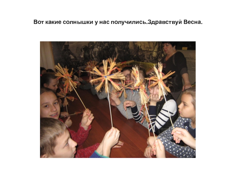 Слайд 7Вот какие солнышки у нас получились.Здравствуй Весна.