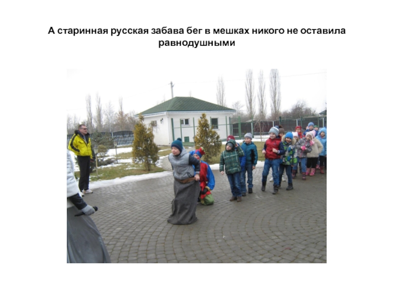 Слайд 5А старинная русская забава бег в мешках никого не оставила равнодушными