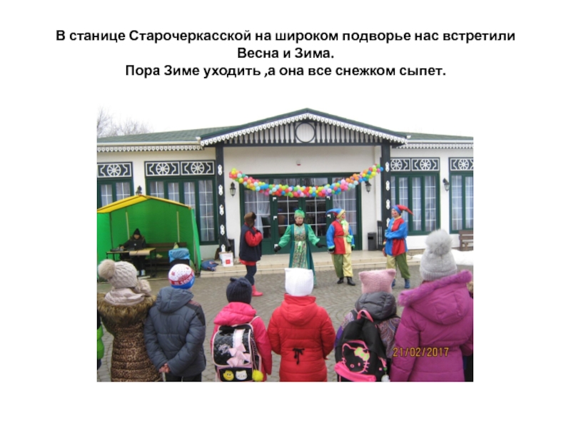 Слайд 2В станице Старочеркасской на широком подворье нас встретили Весна и Зима. Пора