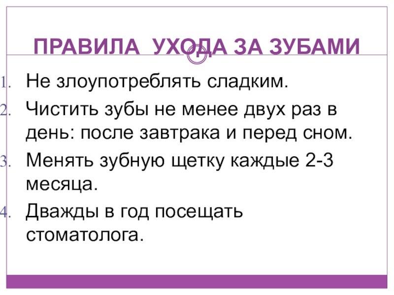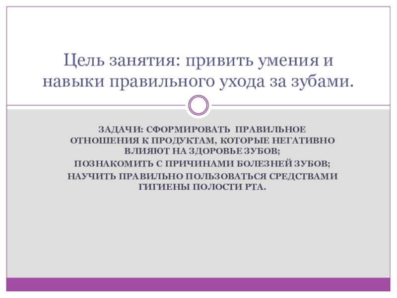 Цель занятия: привить умения и навыки правильного ухода за зубами.