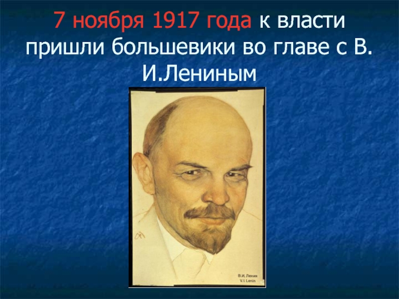 7 ноября 1917 года к власти пришли большевики во главе с В.И.Лениным