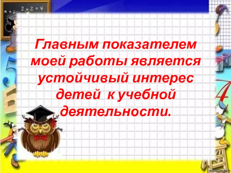 Слайд 22Главным показателем моей работы является устойчивый интерес детей к учебной деятельности.
