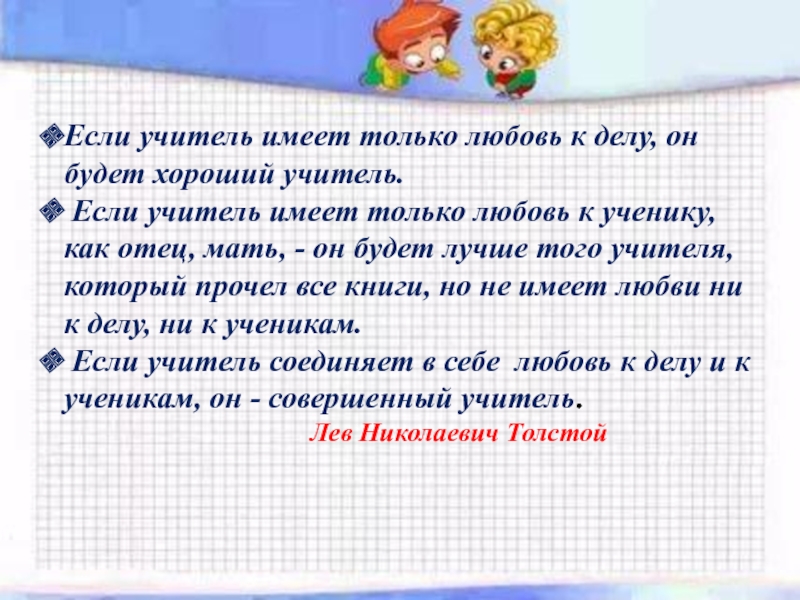 Слайд 24Если учитель имеет только любовь к делу, он будет хороший учитель.