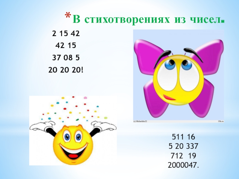 В стихотворениях с числами.