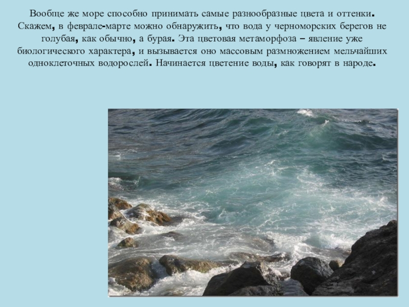 Слайд 12В «цветовой гамме» Черного моря много интересного. Во всем остальном удивительного