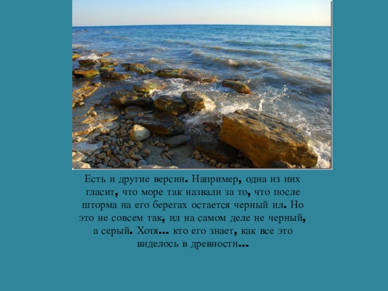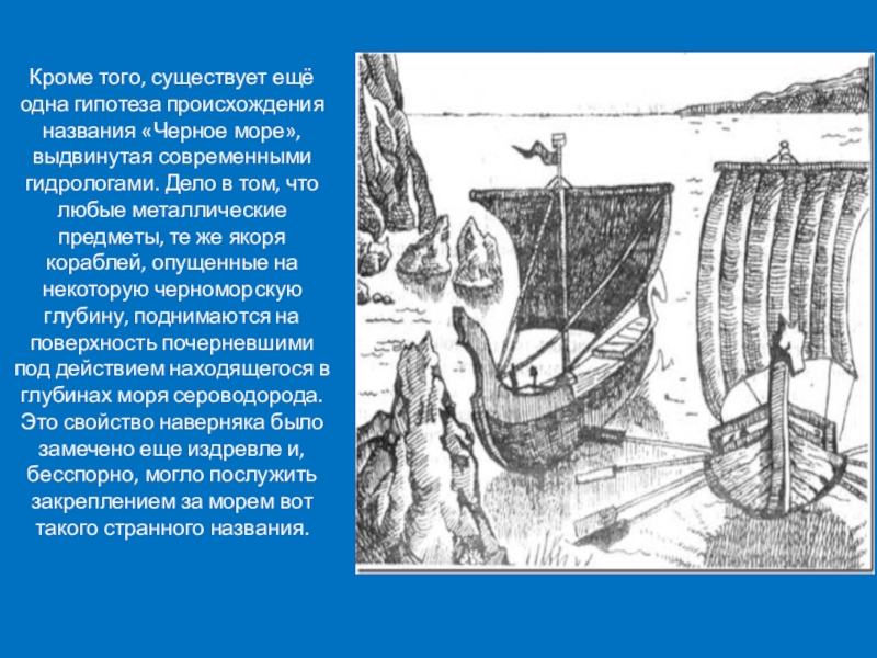 Слайд 10Кроме того, существует ещё одна гипотеза происхождения названия «Черное море», выдвинутая