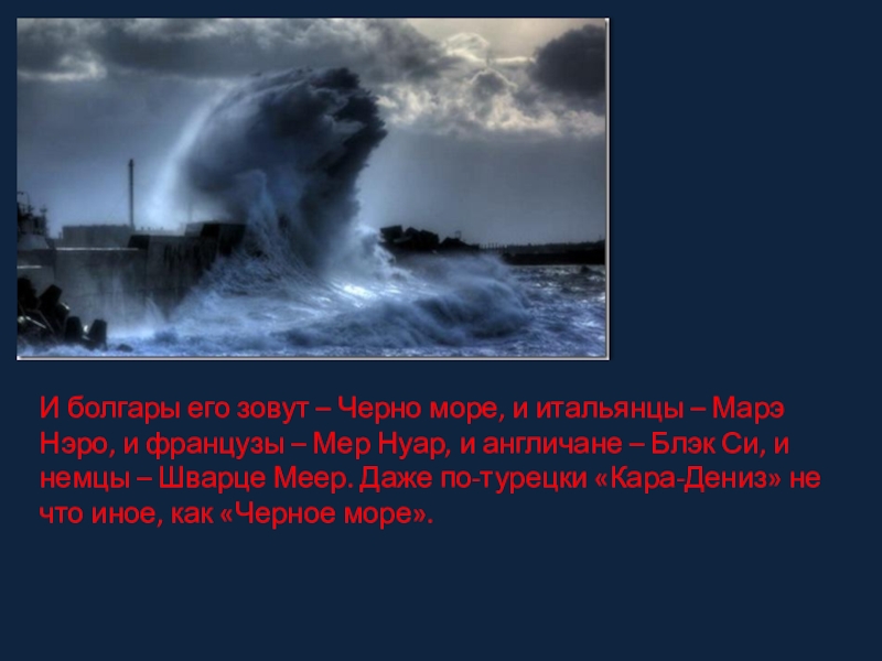 Слайд 3И болгары его зовут – Черно море, и итальянцы – Марэ