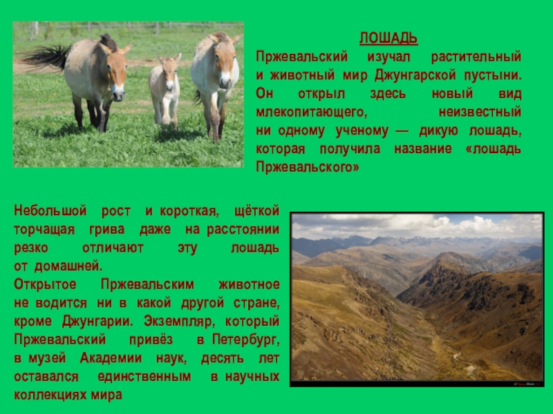 Благодаря исследованиям Н.М. Пржевальского европейцам стала известна огромная территория, охватывающая Монголию, Джунгарию, Восточный Тибет и Туркестан