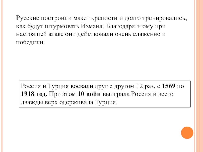 Россия и Турция воевали друг с другом 12 раз, с 1569 по 1918 год. При этом 10 войн выиграла Россия и всего дважды верх одерживала Турция.
