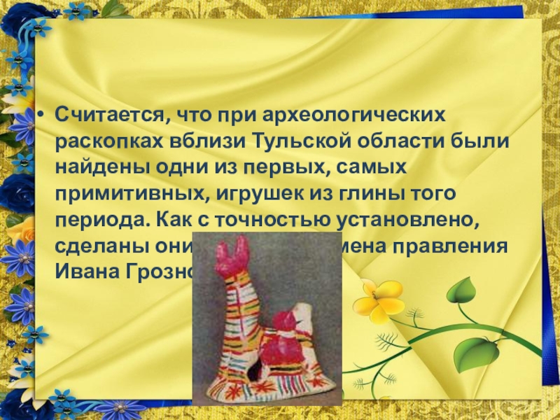 Слайд 37Считается, что при археологических раскопках вблизи Тульской области были найдены одни
