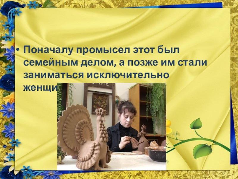 Слайд 33Поначалу промысел этот был семейным делом, а позже им стали заниматься
