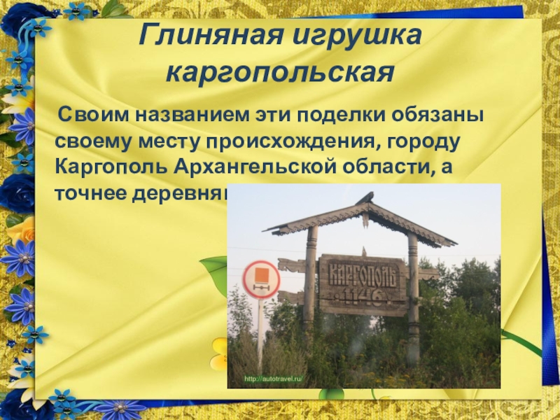 своему месту происхождения, городу Каргополь Архангельской области, а точнее деревням вокруг него.