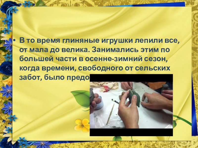 Слайд 11В то время глиняные игрушки лепили все, от мала до велика.