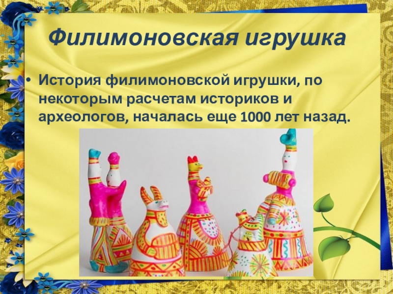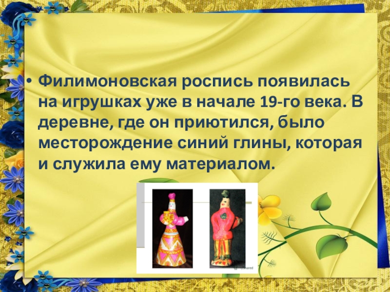 Слайд 39Филимоновская роспись появилась на игрушках уже в начале 19-го века. В
