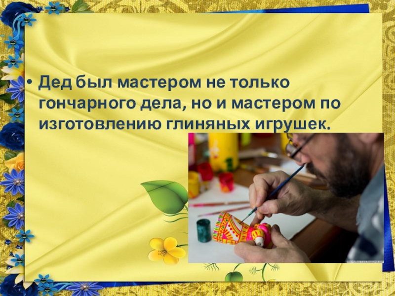 Слайд 40Дед был мастером не только гончарного дела, но и мастером по