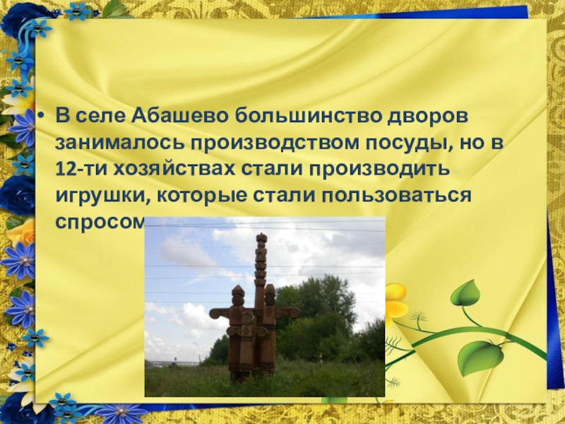 Слайд 17В селе Абашево большинство дворов занималось производством посуды, но в 12-ти