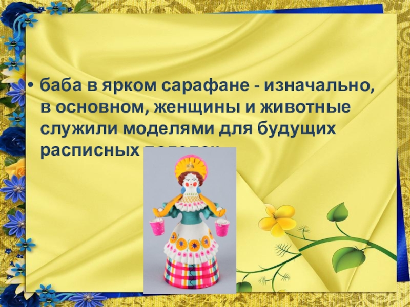 Слайд 28баба в ярком сарафане - изначально, в основном, женщины и животные