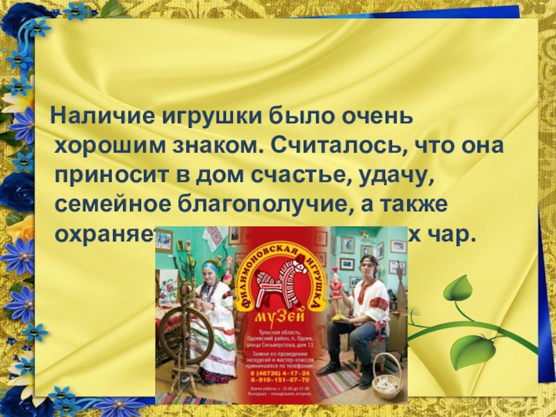 Слайд 46 Наличие игрушки было очень хорошим знаком. Считалось, что она