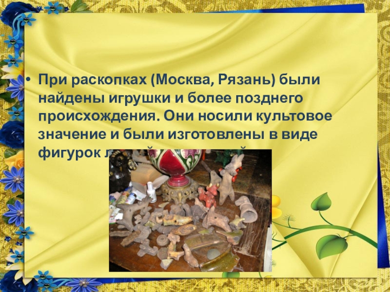 Слайд 6При раскопках (Москва, Рязань) были найдены игрушки и более позднего происхождения.
