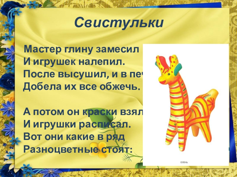 Слайд 9Из глины лепили всевозможные игрушки-свистульки, образы людей, птиц, зверей, грематушки (погремушки)