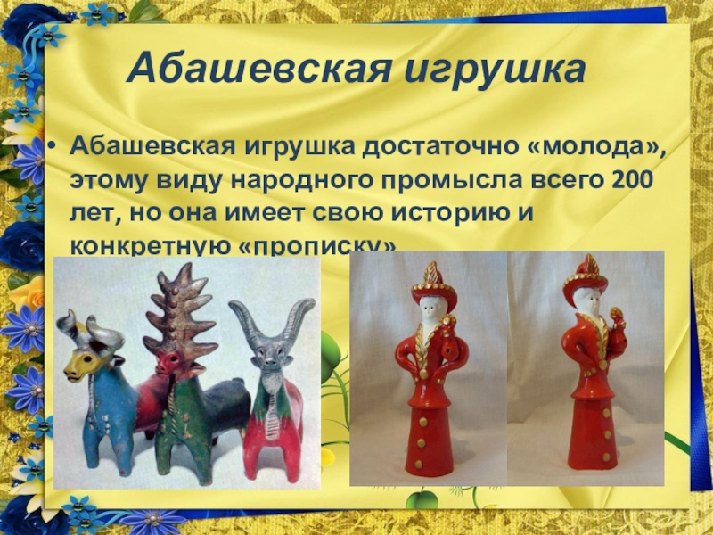 Абашевская игрушка достаточно «молода», этому виду народного промысла всего 200