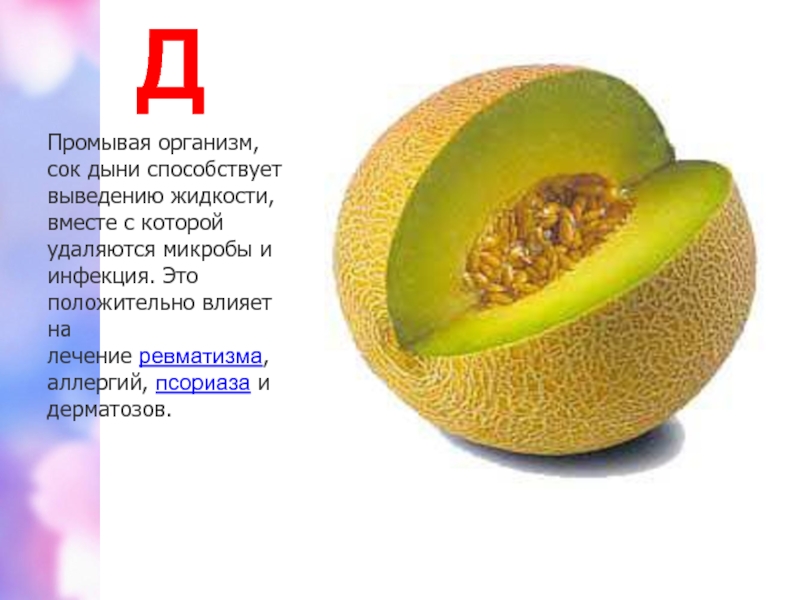 Промывая организм, сок дыни способствует выведению жидкости, вместе с которой удаляются