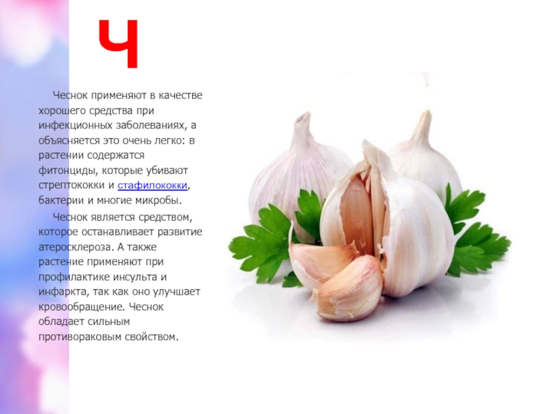 Чеснок применяют в качестве хорошего средства при инфекционных заболеваниях, а объясняется