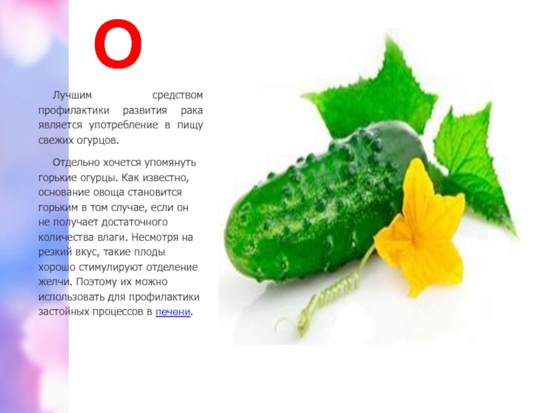 Лучшим средством профилактики развития рака является употребление в пищу свежих огурцов.