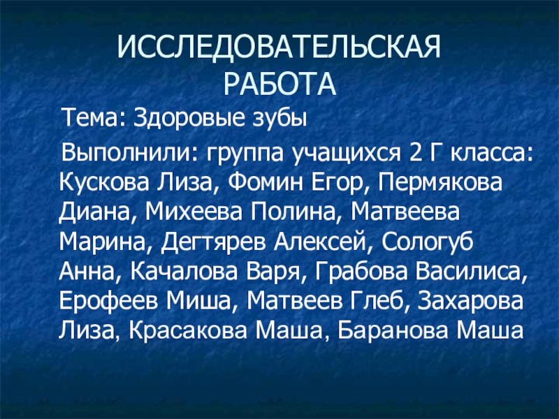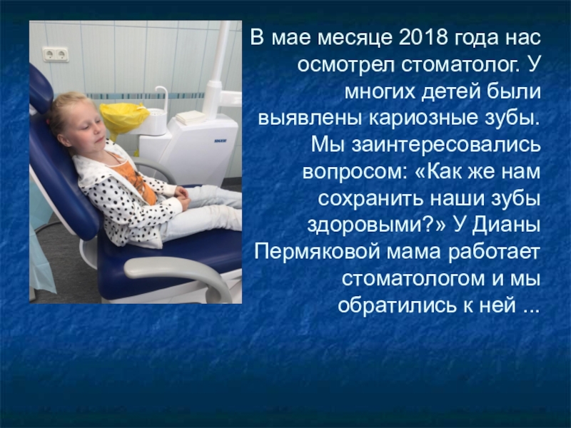 У многих детей были выявлены кариозные зубы. Мы заинтересовались вопросом: «Как же нам сохранить наши зубы здоровыми?» У Дианы Пермяковой мама работает стоматологом и мы обратились к ней ...
