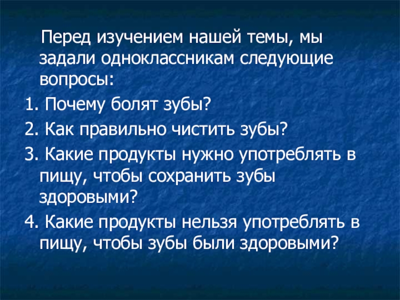 Слайд 5 Перед изучением нашей темы, мы задали одноклассникам следующие вопросы: