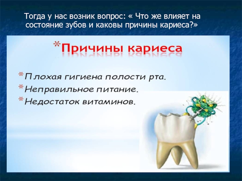 ВЫЯСНИТЬ ПРИЧИНЫ БОЛЕЗНИ ЗУБОВ И УСЛОВИЯ СОХРАНЕНИЯ ЗУБОВ