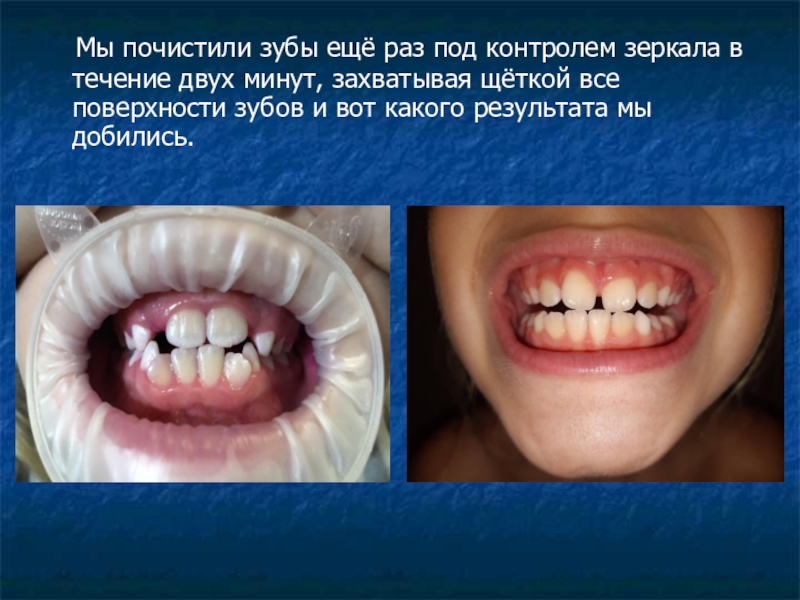 Слайд 22 Мы почистили зубы ещё раз под контролем зеркала в