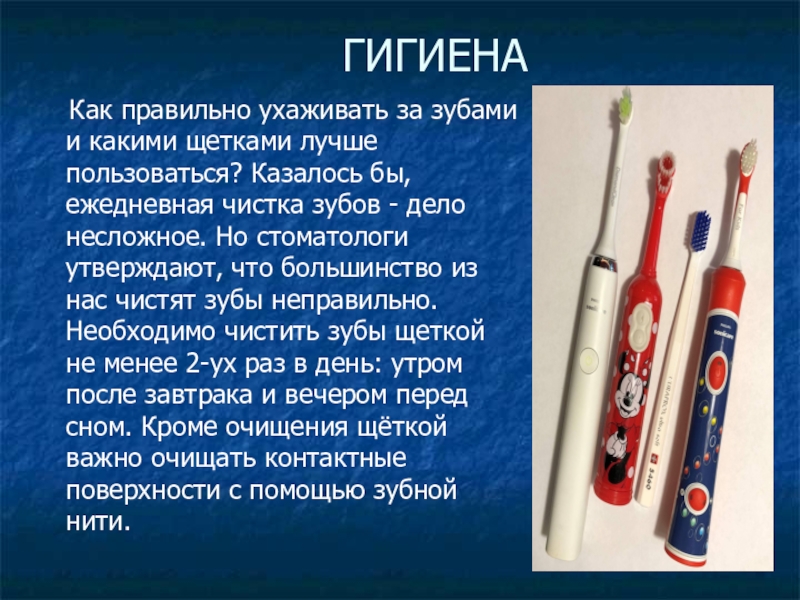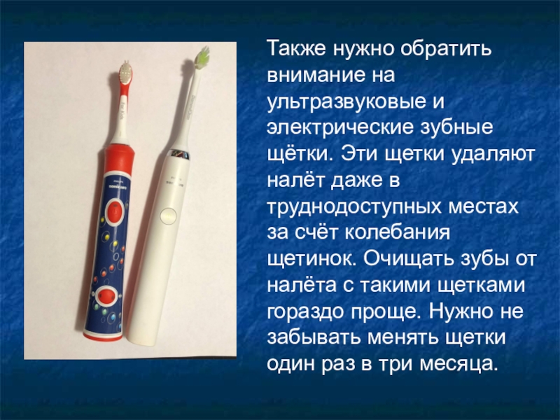Слайд 14 Также нужно обратить внимание на ультразвуковые и электрические зубные