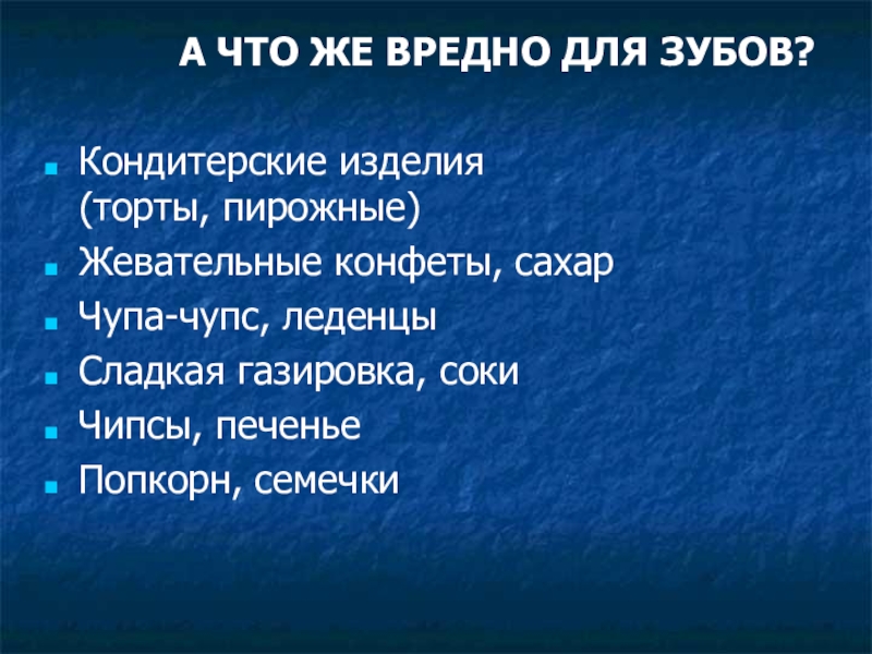 4. Какие продукты нельзя употреблять в пищу, чтобы зубы были здоровыми?
