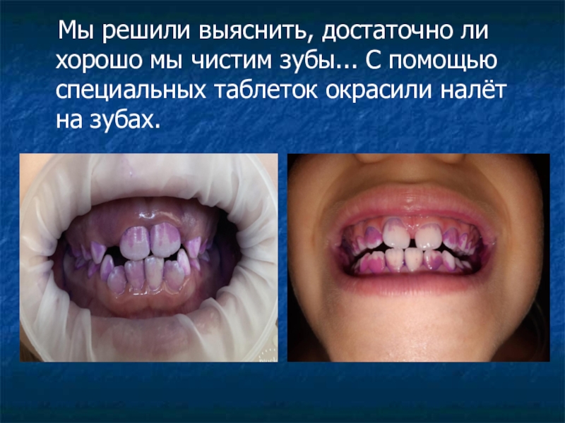 Слайд 20 Мы решили выяснить, достаточно ли хорошо мы чистим зубы...