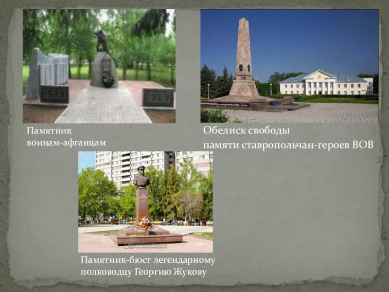 Обелиск свободы памяти ставропольчан-героев ВОВПамятник воинам-афганцамПамятник-бюст легендарному полководцу Георгию Жукову