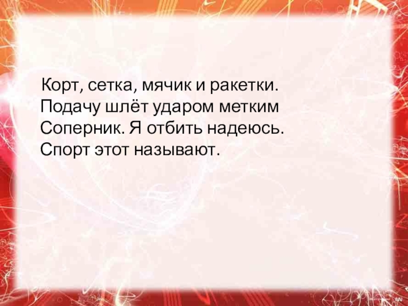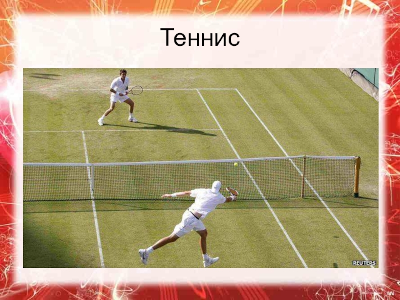 Слайд 38 Корт, сетка, мячик и ракетки.