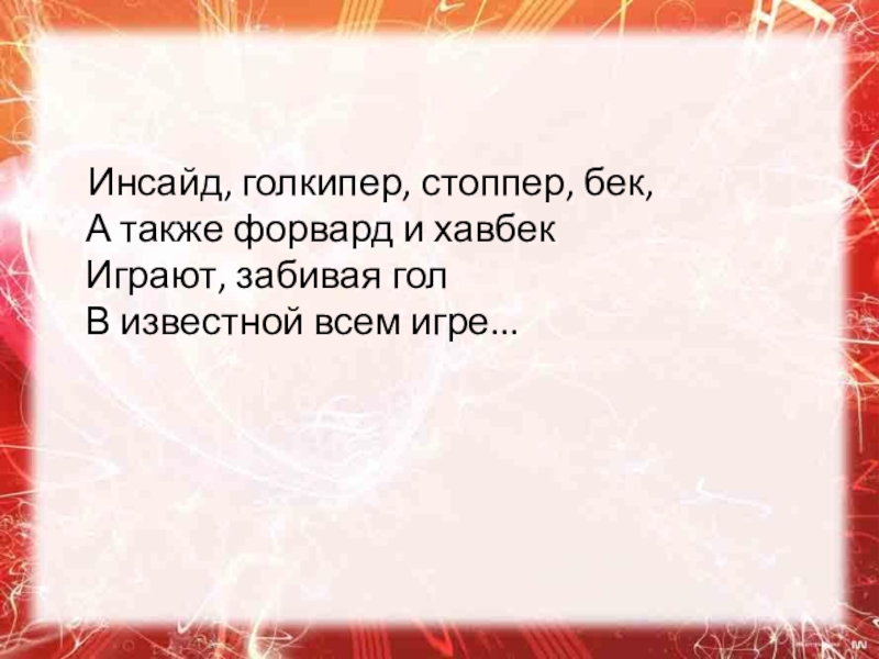 Слайд 40 Инсайд, голкипер, стоппер, бек,