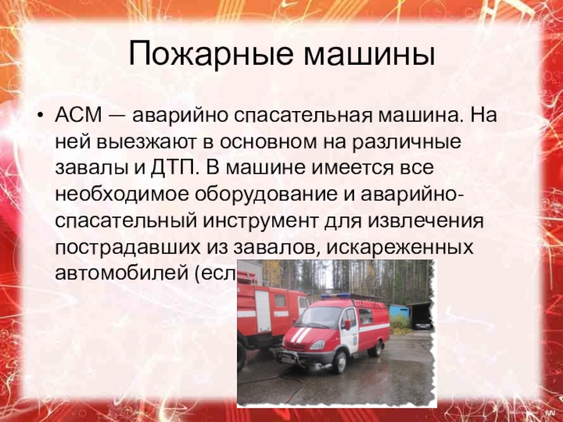 АСМ — аварийно спасательная машина. На ней выезжают в основном на