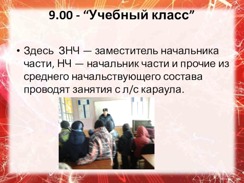 и прочие из среднего начальствующего состава проводят занятия с л/с караула.