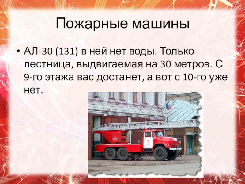 АЛ-30 (131) в ней нет воды. Только лестница, выдвигаемая на