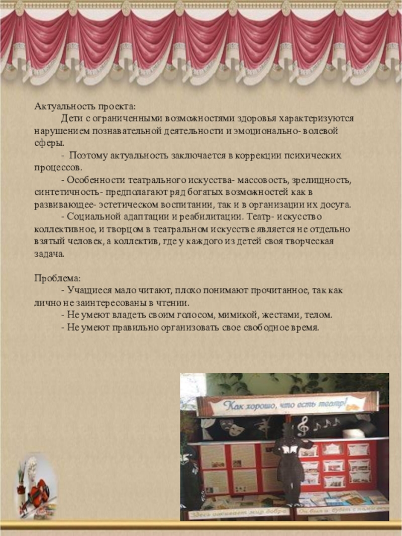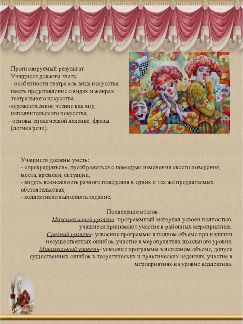 - особенности театра как вида искусства, иметь представление о видах и жанрах театрального искусства,