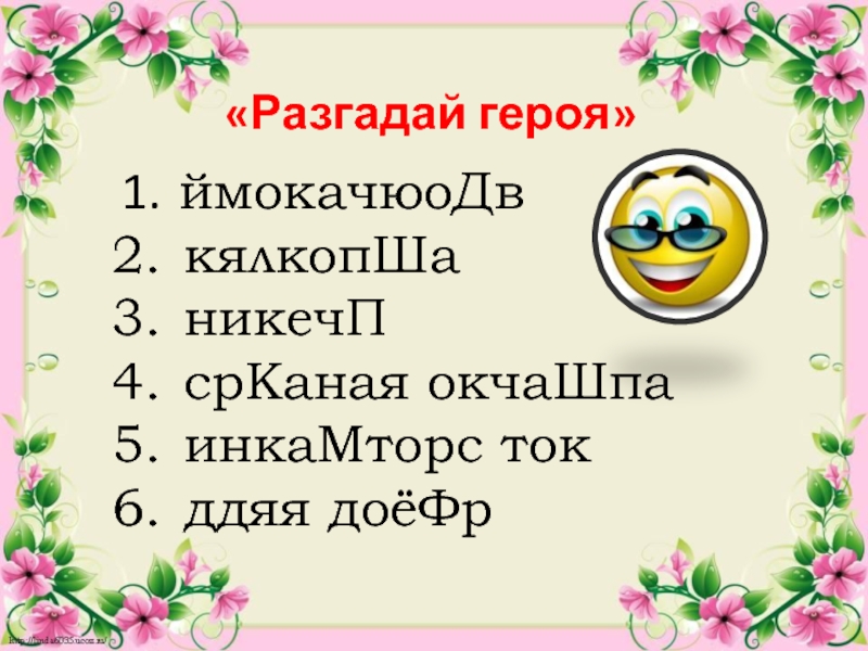 «Разгадай героя» ймокачюоДв кялкопШа никечП срКаная окчаШпа инкаМторс ток ддяя доёФр