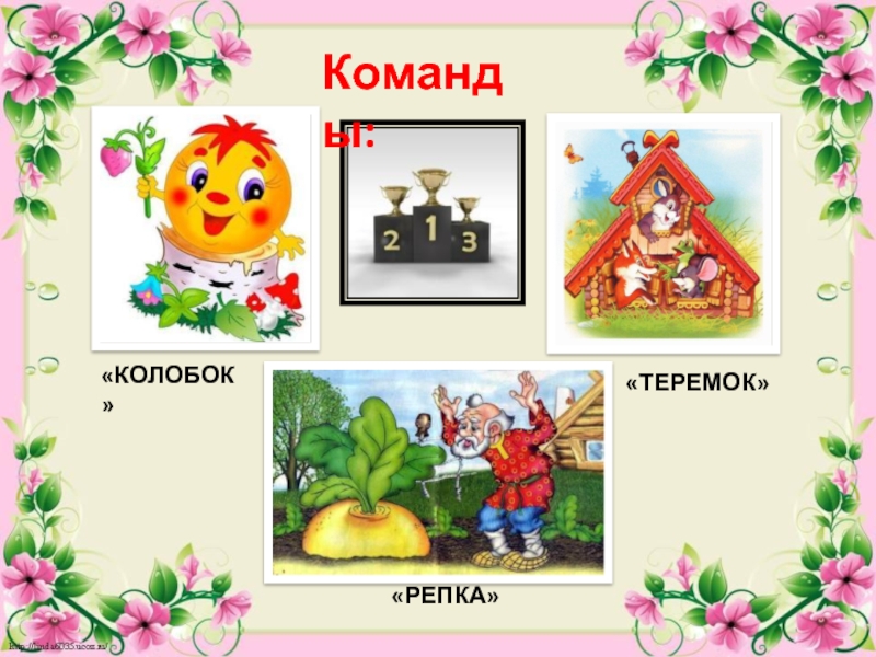 «КОЛОБОК»«ТЕРЕМОК»«РЕПКА»Команды: