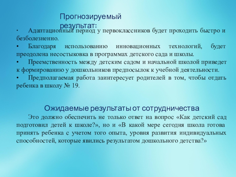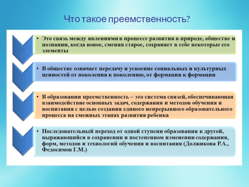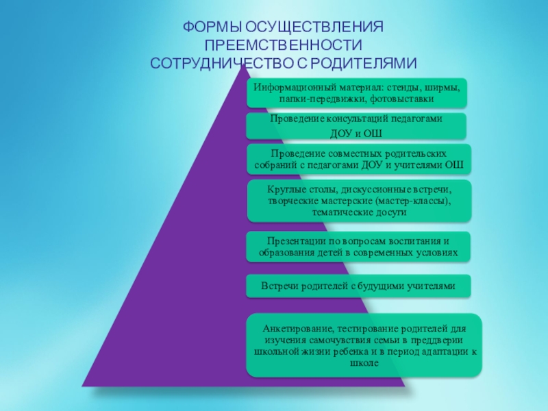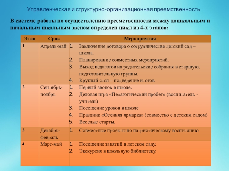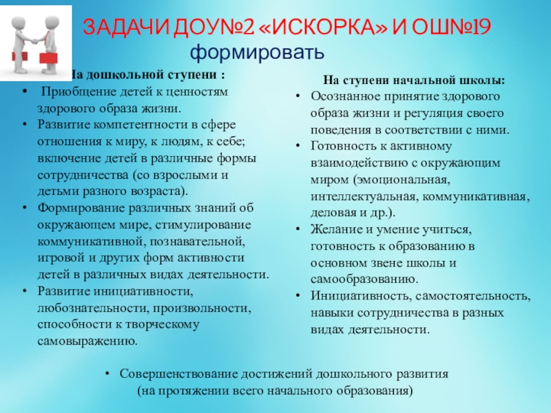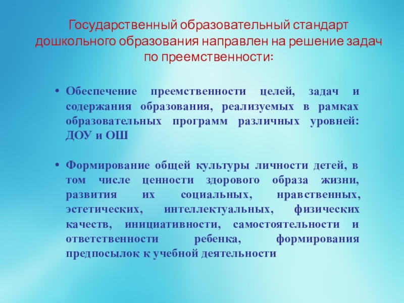 Обеспечение преемственности целей, задач и содержания образования, реализуемых в рамках образовательных программ различных уровней: ДОУ и ОШ