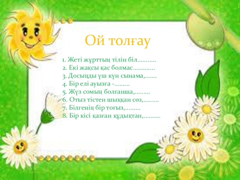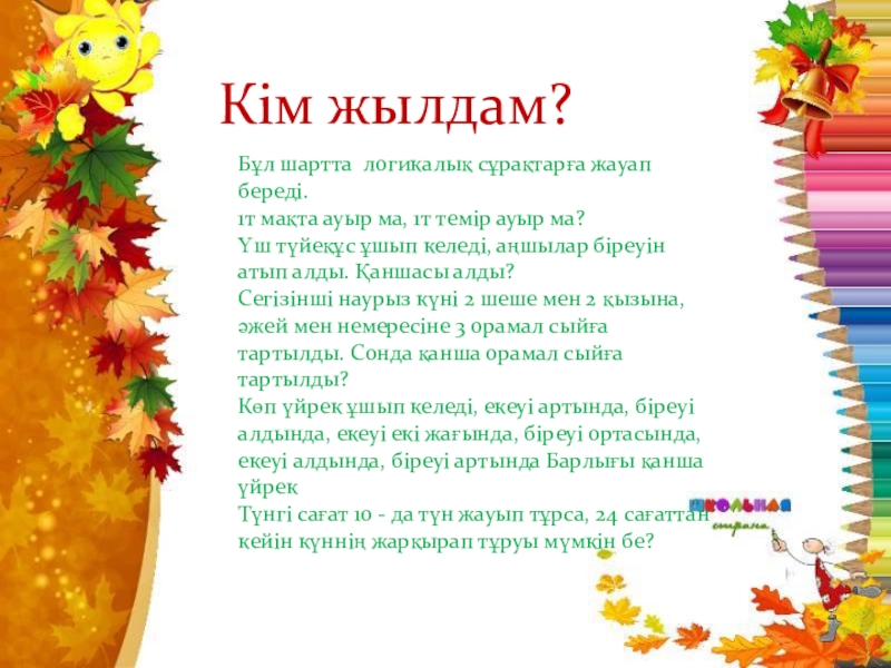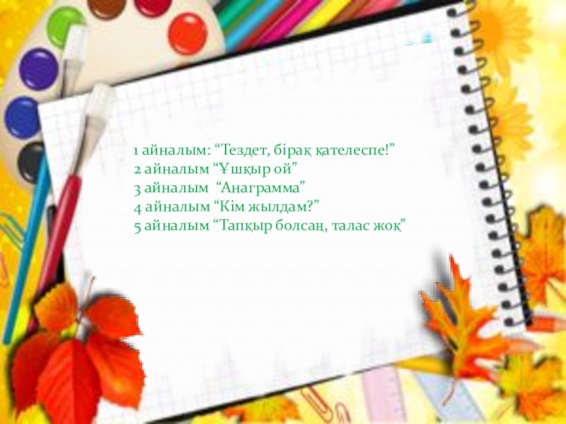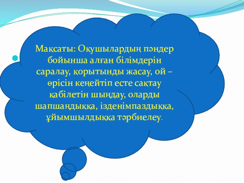 Мақсаты: Оқушылардың пәндер бойынша алған білімдерін саралау, қорытынды жасау, ой – өрісін кеңейтіп есте сақтау қабілетін шыңдау, оларды шапшаңдыққа, ізденімпаздыққа, ұйымшылдыққа тәрбиелеу.