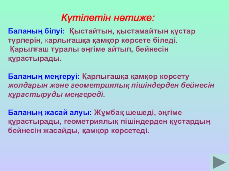 Күтілетін нәтиже: