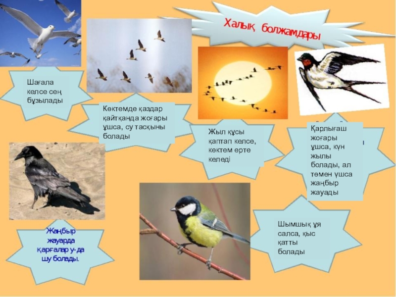 Қарлығаш жоғары ұшса, күн жылы болады, ал төмен үшса жаңбыр жауады