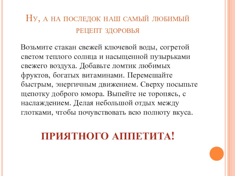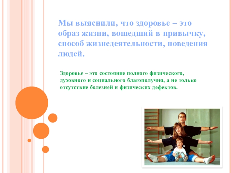 Здоровье – это состояние полного физического, духовного и социального благополучия, а не только отсутствие болезней и физических дефектов.