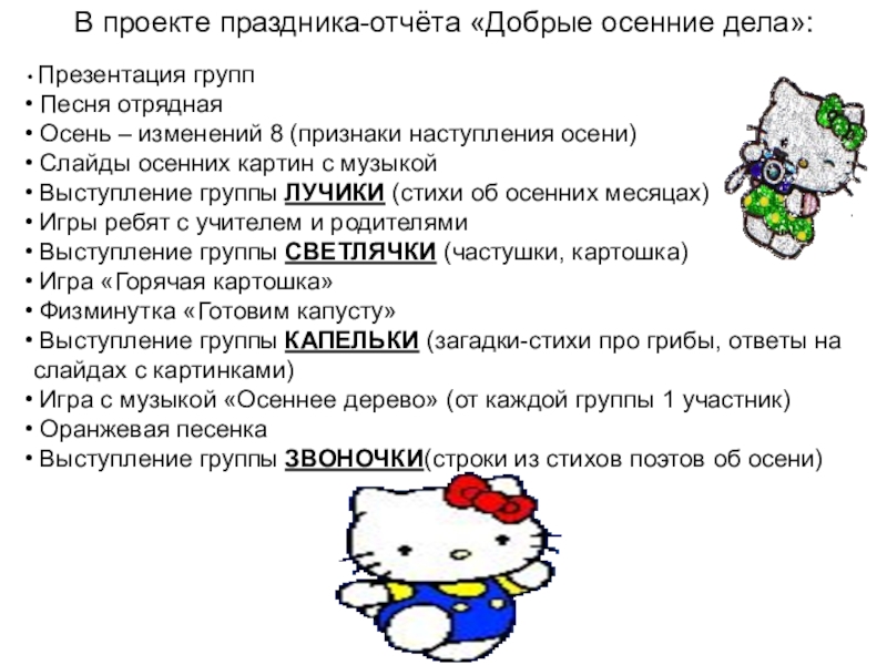 В проекте праздника-отчёта «Добрые осенние дела»: